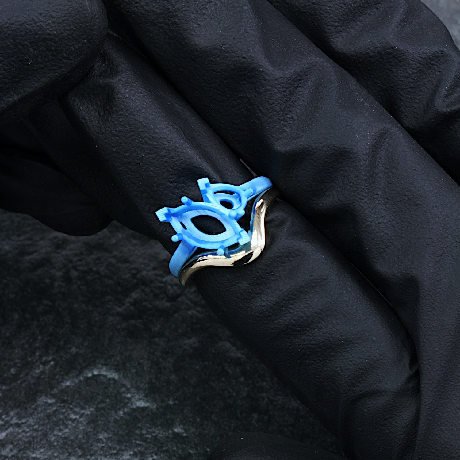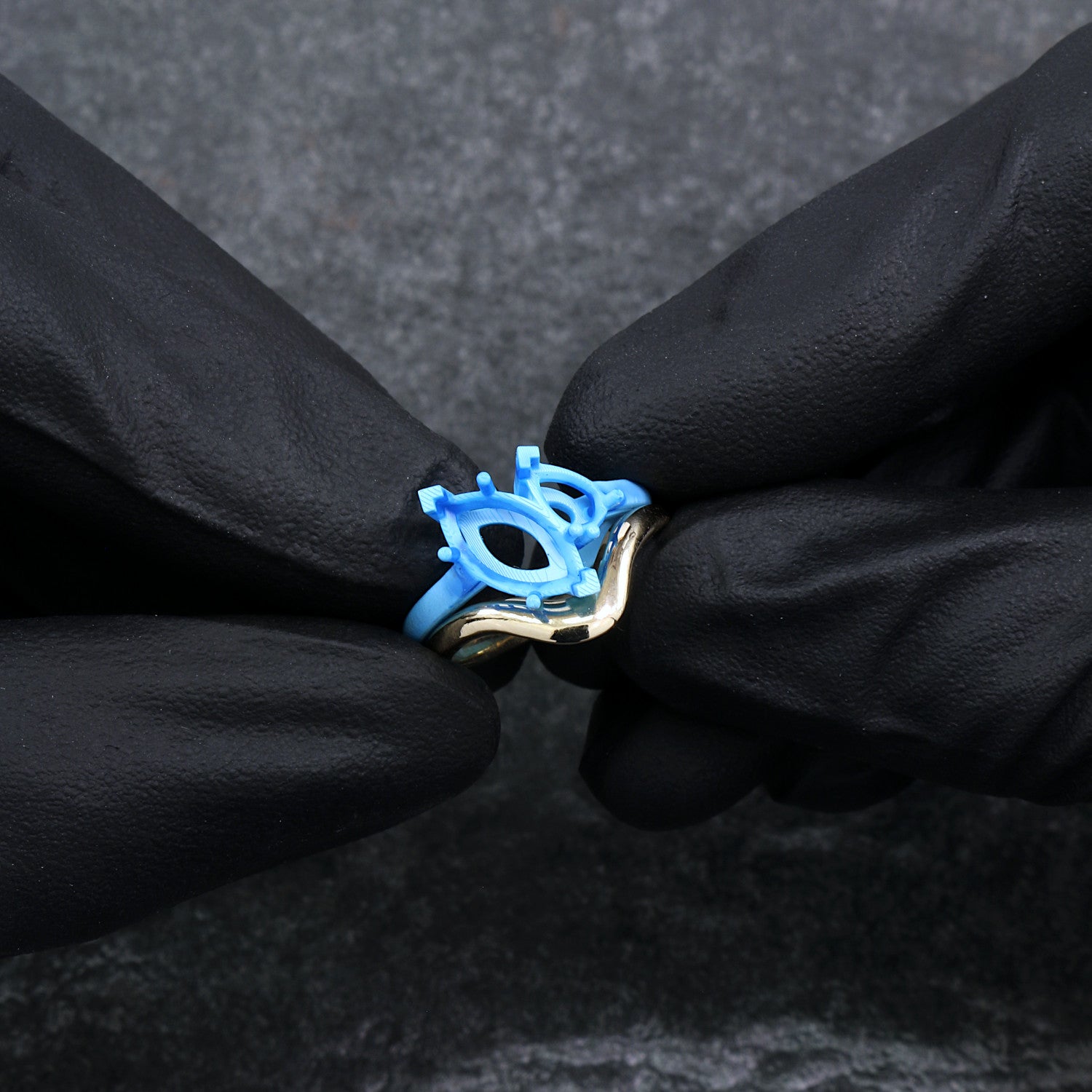 Here is the wedding band we made for the marquise and pear engagement ring. Since we designed the engagement ring we didn’t need the original back to model the band around, we just used the model. However this does mean we didn’t have it to showoff the two completed together. In it's place we printed another engagement ring to show how the two will fit together.